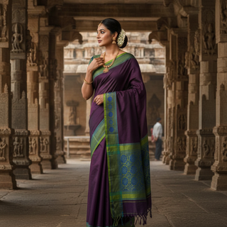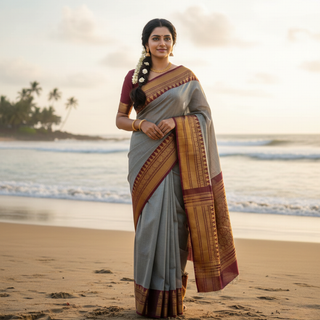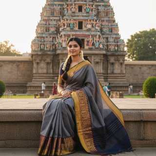 Elevate your daily grace with our latest collection of 100% Kanchi Cotton sarees. Featuring stunning, attractive color combinations, these sarees are perfect for adding a touch of traditional charm...
